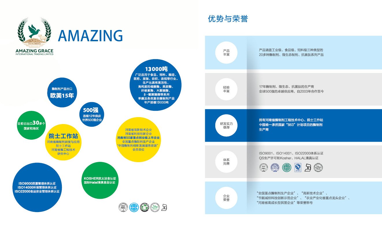 AMAZING GRACE INTERNATIONAL TRADING LIMITED is a globally recognized supplier of high-quality feed additives, specializing in enzymes and microbial products. Headquartered in Hong Kong, with integrated production and operational facilities located in Mainland China, the company has established itself as a key player in the international biotechnology trade.
